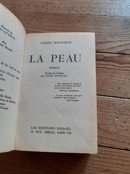 La peau | Malaparte | Denoël, 1958. In-12° broché, 504 pages. Couverture propre. Dos solide. Intérieur frais sans annotation et soulignage. Très bon état général pour cet ouvrage [BL36]