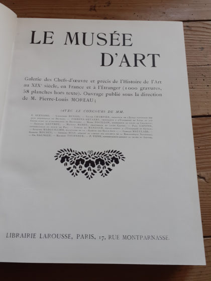 LE MUSEE D’ART – GALERIE DES CHEFS D’OEUVRE ET PRECIS DE L’HISTOIRE DE L’ART AU XIXe SIECLE, EN FRANCE ET A L’ETRANGER. | Collectif | Larousse, 1930. In-4° cartonné 418p. Couverture propre. Dos solide. intérieur frais sans soulignage ou annotation. Très bon état général pour cet ouvrage [EB14]