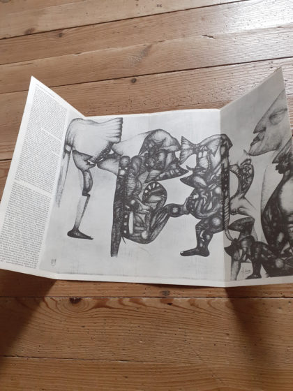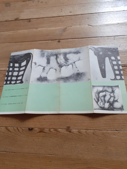 Fred Deux . Invitation à l’exposition à la galerie Daniel Cordier . 1962. | Fred Deux | Galerie Cordier, 192. In-4 , feuillet A3 cartonné dépliant qui annonce le vernissage de l’exposition Fred Deux à la galerie Cordier. Dimensions: 12 x 29,5 cm. Déployé: 49 x 29,5 cm. Dessin sans titre de F. Deux accompagné d’une présentation de Geneviève Bonnefoi. très bon état général. [ BL36]